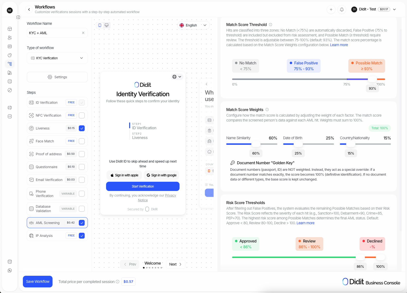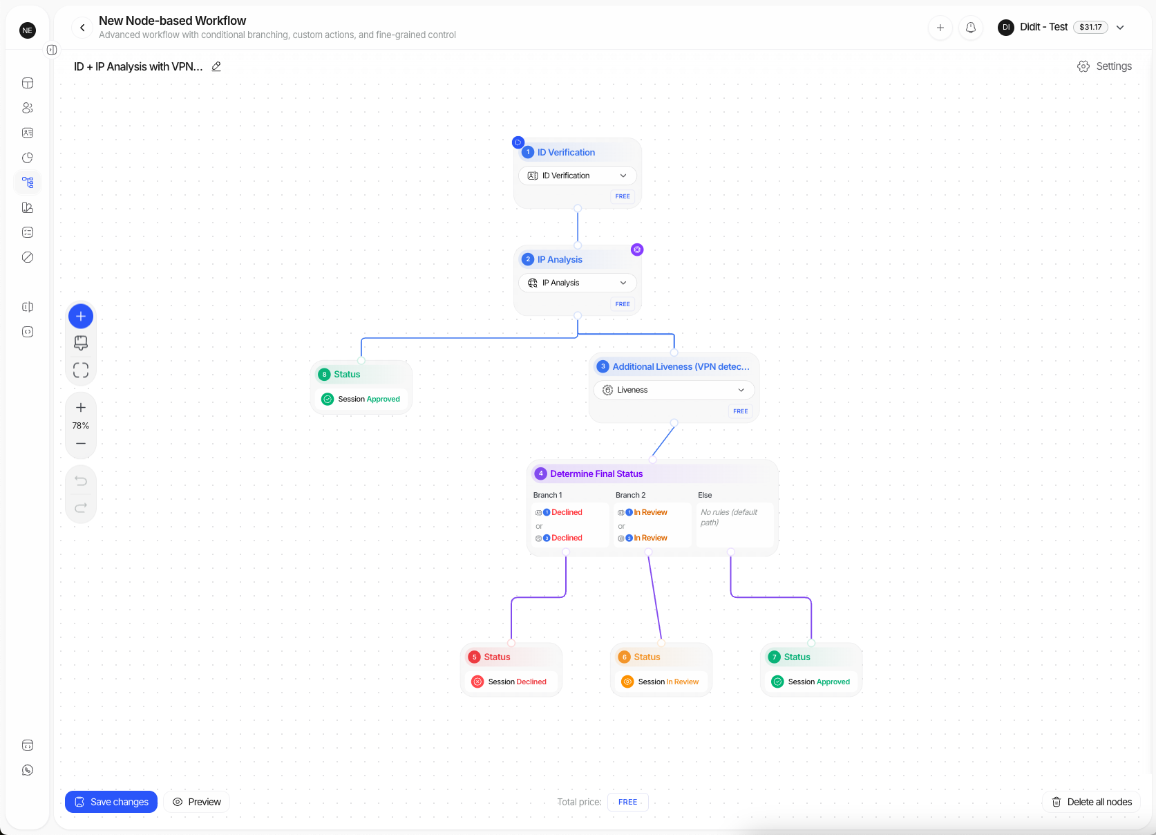 - Graph-Based Workflows: Create complex, visual workflows to map any identity flow. Centralize, automate, and optimize your operations and compliance, especially as you scale to new countries.