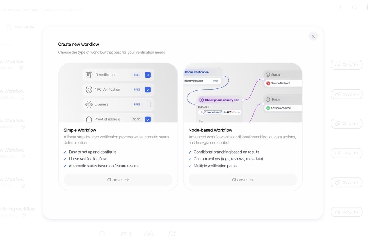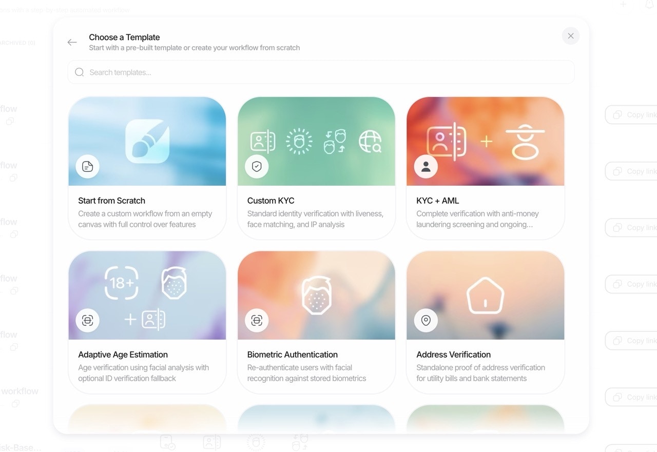 - Choose a workflow template (KYC, Age Verification, etc.)