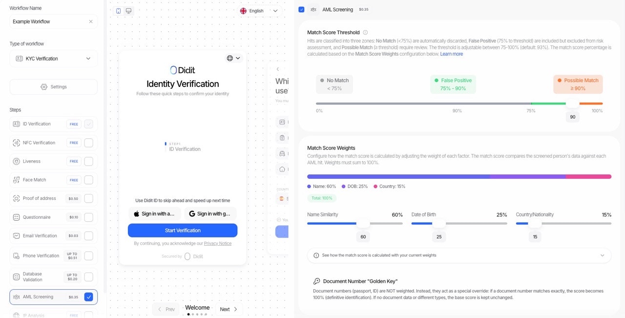 - Use document numbers when available — They provide the strongest identity confirmation and can override low match scores.