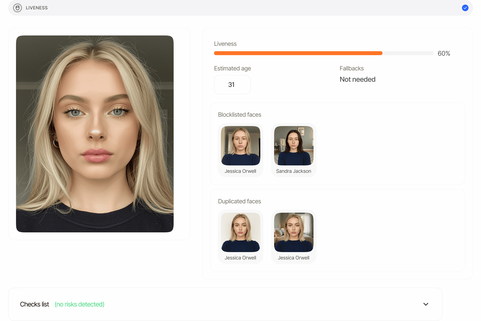 - If a match to a blocklisted face is found, the verification is automatically declined